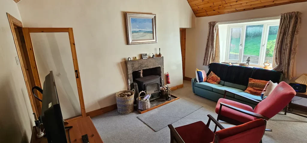The accommodation is licensed for up to four people including children of any age, and consists of six rooms, three (the main room and the two bedrooms) in the old building and three (kitchen, bathroom and sun room) added on as an extension to the north-west (seaward) wall.